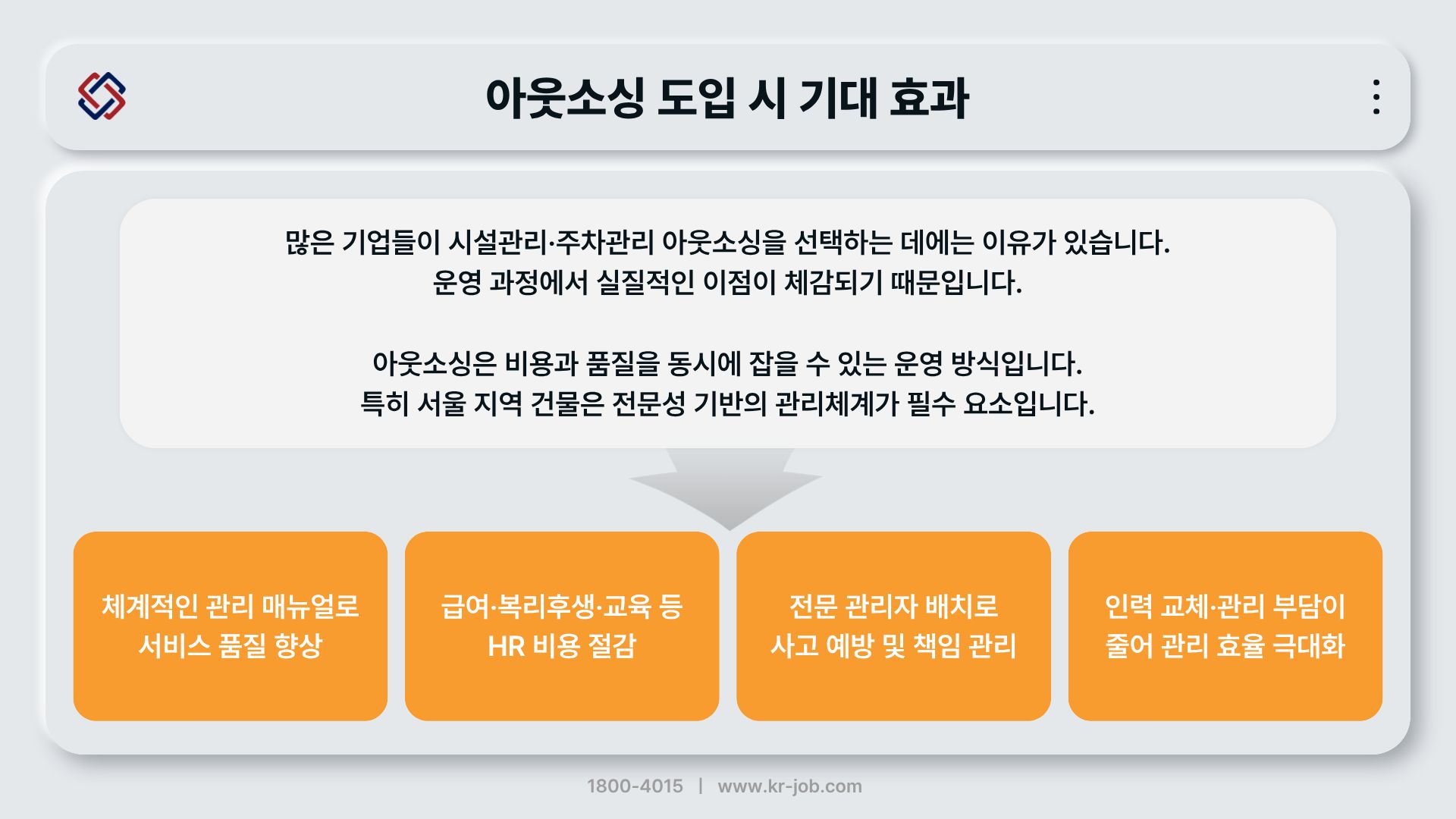 오늘은 보다 효율적인 관리 체계를 구축하기 위해 많은 기업과 건물주님들이 선택하고 있는 아웃소싱 운영 방식을 안내드립니다!